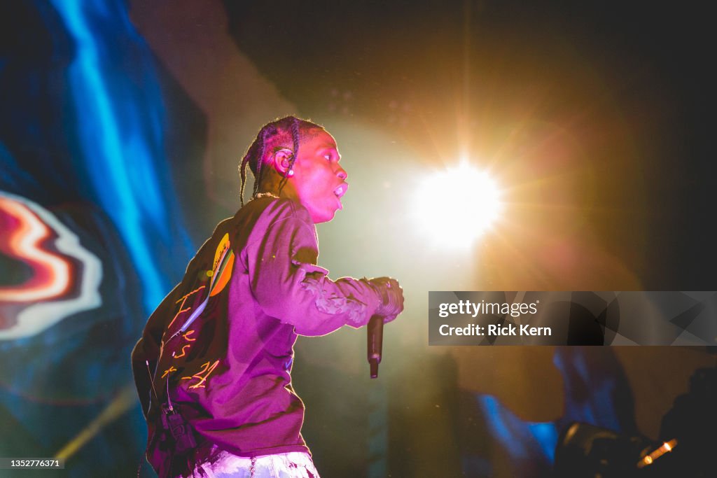 HOUSTON, TEXAS - NOVEMBER 05: Travis Scott performs onstage during the third annual Astroworld Festival at NRG Park on November 05, 2021 in Houston, Texas. (Photo by Rick Kern/Getty Images)