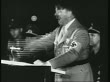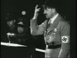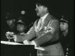 B/W 1930s Adolf Hitler wearing swastika armband at podium delivering impassioned speech