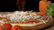 HD1080p: Super Slow Motion shot of adding a sprinkle of cheese while making pizza. Recorded at 1050 fps