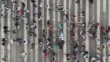 Aerial view of pedestrians walking across with crowded traffic - HD stock video