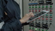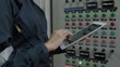 An electrician engineer working,check and recording electrical protection relay parameter in control room,operator station network in industry factory. - 4K stock video