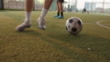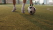 Unrecognizable Asian soccer player running with ball on a match while avoiding her opponent. on a soccer field on a sunny summer day.
