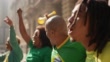 Brazilian friends watching a soccer game and celebrating outdoors - 4K stock video