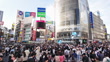 Busy crowded Japanese people, tourist visitor, traveler walk cross road at Shibuya scramble crossing on Tokyo summer day. Japan tourism landmark, Asia travel destination, pedestrian transportation