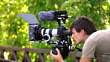 cameraman is shooting video with a camera, mattebox and follow focus