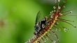"Timelapse footage of a Cape sundew (Drosera capensis) engulfing a fly. The sundew is a carnivorous plant. It attracts insects with drops of sweet-smelling fluid on the tentacles on its leaves. When the insect lands on the leaves, it becomes stuck to the highly-adhesive tentacles. Surrounding tentacles then move to further ensnare the insect, and the entire leaf curls round to trap it, a process called thigmonasty. Glands on the leaf then release digestive enzymes, which liquefy the insect internal organs, allowing them to be digested by the plant. The sundew grows in acid soils where there is a shortage of nitrogen and other nutrients. Extracting these from insect prey allows the plant to thrive in regions inhospitable to other plants."