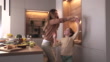 Carefree single mother and daughter dancing in the kitchen. - 4K stock video