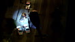 AERIAL Cars and officers surrounding stopped vehicle, helicopter spotlighting them from above - HD stock video