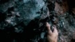 Close up video of climber's hands try to reach the rock but doesn't make and falls