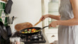 Close-up of a young woman cooking stir fry in wok. Shot in 4K. Tokyo, Japan