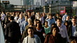 MS, ZO commuters crossing London Bridge, London, England - HD stock video