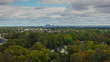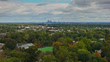 Aerial shot of Haverford, a town in Delaware County, Pennsylvania to the west of Philadelphia on an overcast day in fall. The downtown Philadelphia skyline is visible in the distance. Haverford is one of the towns of the Philadelphia Main Line.