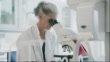 Female scientist in laboratory looking in microscope - 4K stock video
