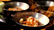 Flames burn under a frying pan filled with shrimp. - HD stock video