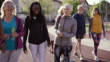 Group of diverse people walking together and talking after their dance class