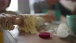 Happy family making mess while preparing a bread at home - 4K stock video