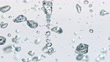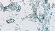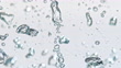 Slow motion close up locked down shot of plain translucent ice cubes falling into water and creating bubbles against white background. Shot in Slovenia.