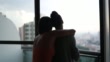 Lesbian couple looking through window at home - 4K stock video