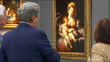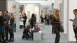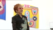 London Frieze art fair: Chicago interview and artworks; Judy Chicago posing in front of her paintings / works of Chicago / various of people walking around the Frieze art fair and works on display