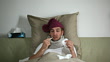 MS Man sick in bed putting thermometer in mouth / Potsdam, Brandenburg, Germany - HD stock video
