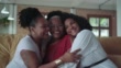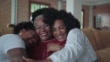 Multi-generation mother receiving hug from her daughters on sofa - 4K stock video