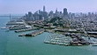 Aerial shot above the North Beach district of San Francisco with Telegraph Hill and the Financial District in the background. Shot in USA.