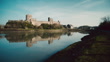 WS Pembroke Castle's reflection mirrored in surrounding moat / Pembroke, Wales, United Kingdom - 4K stock video