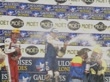 SPA, BELGIUM - JULY 3: (AUDIO OMITTED) Race winner Sito Pons celebrates with a spray of champagne on the podium alongside Jacques Cornu, 2nd position, and Anton Mang, 3rd position, after the Belgian Grand Prix at Circuit de Spa-Francorchamps on July 3, 1988 in Spa, Belgium. (Footage by Duke Video/Getty Images)