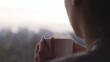 Saying good morning with a warm cuppa - 4K stock video