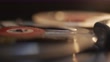 Spinning reel of old, scratched and dusty tape recorder with the music and voice record. Close up