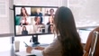 Team of creative professional meet virtually during COVID-19 crisis - 4K stock video