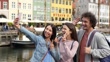 Three Friends Taking Selfies By The Nyhavn Canal In Copenhagen - 4K stock video