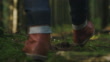 Traveling man hiking through a pine forest on an autumn day - 4K stock video
