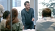 Trendy young businessman leads meeting in office conference-room (dolly shot)