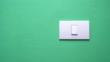 Close up shot of people turn on and turn off a light switch on green wall with copy space