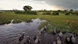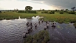 Hd drone footage of a herd of elephants crossing a river in southern Africa