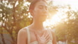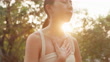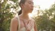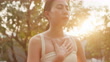 Young Asian women healthy lifestyle practice yoga outdoors standing in city park. Healthy lifestyle and exercises. - 4K stock video